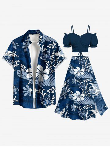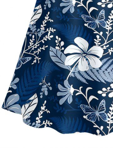 Jupe hawaïenne fendue à imprimé tropical fleurs et feuilles grande taille - Bleu Profond - 3x