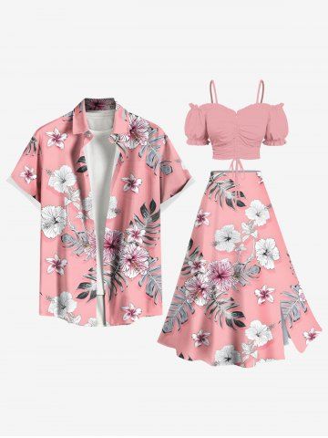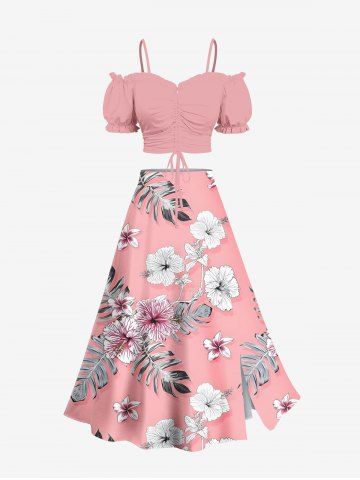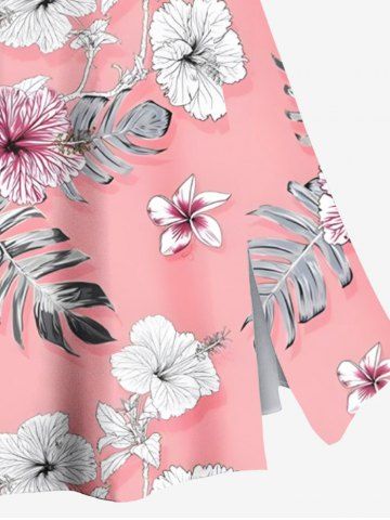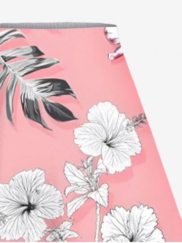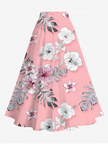 Jupe hawaïenne fendue grande taille à imprimé feuilles tropicales et fleurs d'hibiscus - Rose Clair - Rose Léger