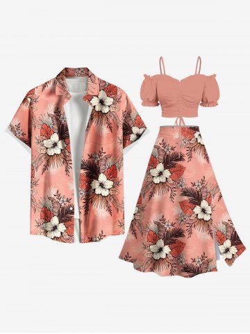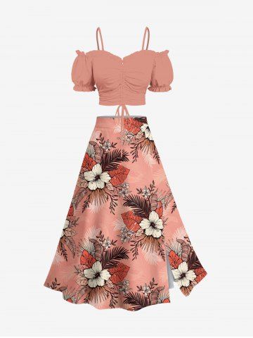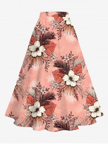 Jupe hawaïenne fendue grande taille à imprimé feuilles tropicales et fleurs d'hibiscus - Rose Clair - Rose Léger