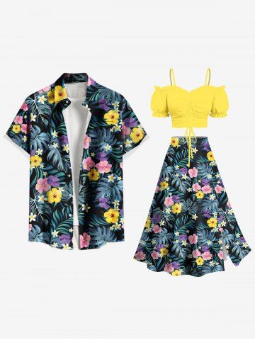 Jupe hawaïenne fendue grande taille à imprimé feuilles tropicales et fleurs - Noir - Noir