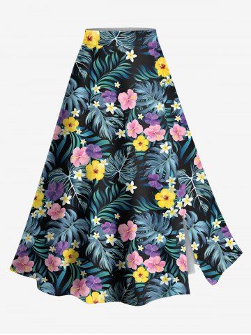 Jupes Graphiques > Jupe hawaïenne fendue grande taille à imprimé feuilles tropicales et fleurs