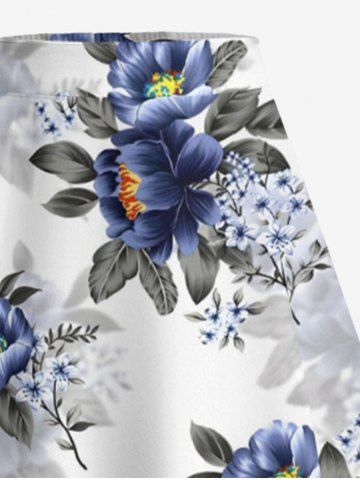 Jupe trapèze fendue hawaïenne à imprimé fleurs et feuilles grande taille - Blanc - Blanc