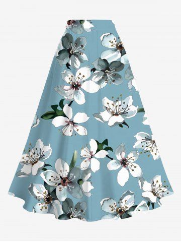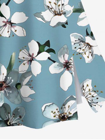 Jupe trapèze fendue hawaïenne à imprimé fleurs et feuilles grande taille - Bleu-gris - 4x
