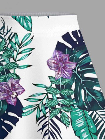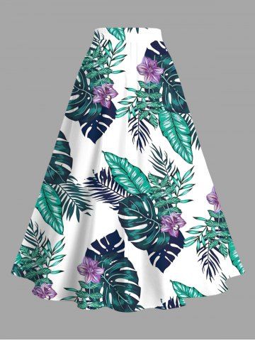 Jupes Graphiques > Jupe trapèze fendue hawaïenne à imprimé floral tropical et feuilles d'hibiscus grande taille