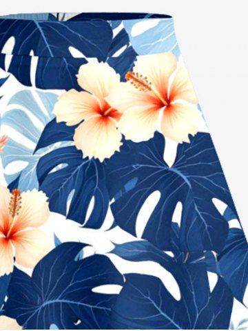 Jupes Graphiques > Jupe trapèze fendue hawaïenne à imprimé floral tropical et feuilles d'hibiscus grande taille