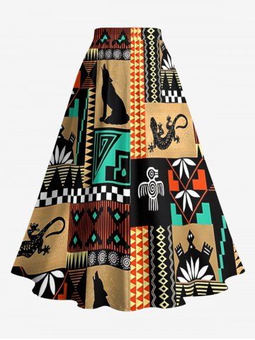Jupes Graphiques > Jupe trapèze fendue hawaïenne à imprimé géométrique ethnique grande taille