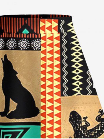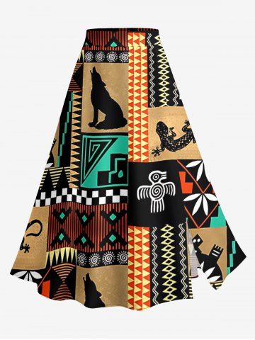Jupes Graphiques > Jupe trapèze fendue hawaïenne à imprimé géométrique ethnique grande taille