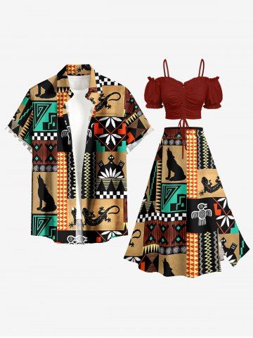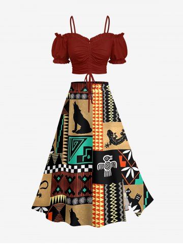 Jupe trapèze fendue hawaïenne à imprimé géométrique ethnique grande taille - Café Lumière - 5x