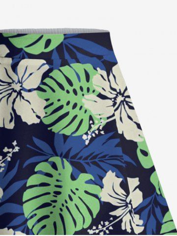 Jupe trapèze fendue hawaïenne grande taille à imprimé feuilles tropicales et fleurs d'hibiscus - Bleu De Minuit - L