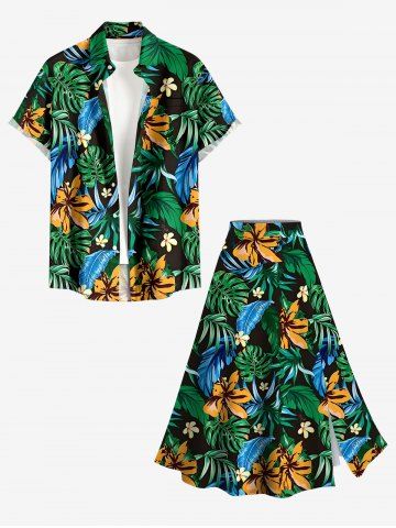 Plus Size Flower Tropical Leaf Print Split Hawaii Skirt - Vert Profond - M