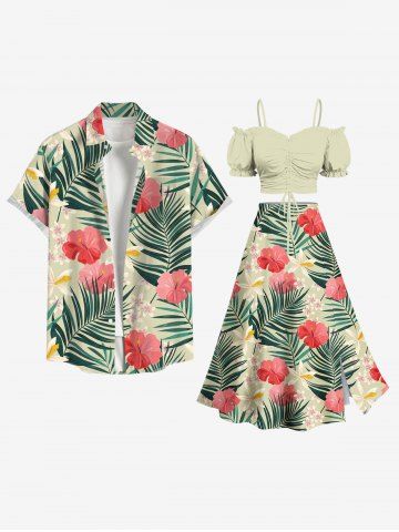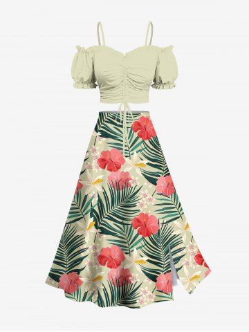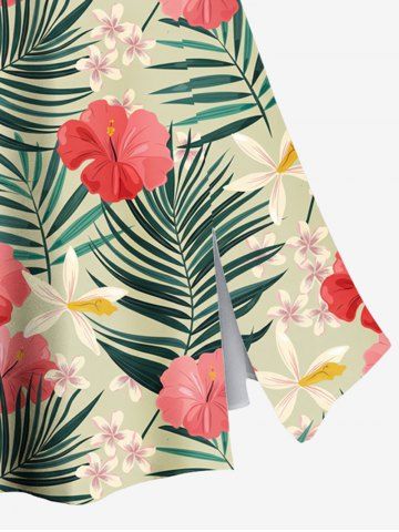 Plus Size Hibiscus Flower Tropical Leaf Print Split Hawaii Skirt - Vert Clair - Vert Clair