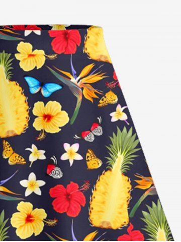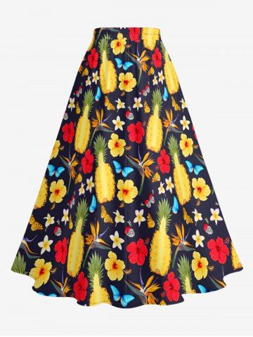 Jupes Graphiques > Plus Size Pineapple Hibiscus Flower Butterfly Print Hawaii Split A Line Skirt