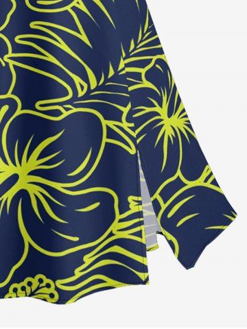 Plus Size Tropical Leaf Hibiscus Flower Print Hawaii Split A Line Skirt - Bleu Profond - L