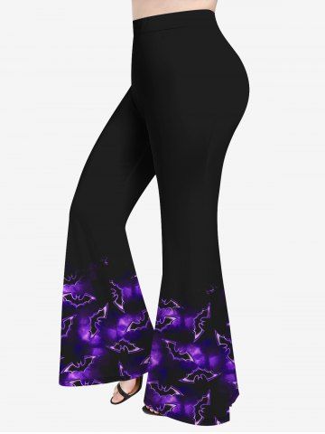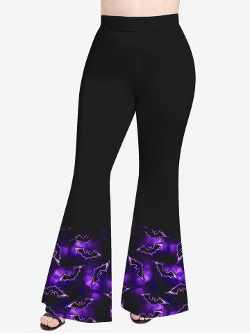 Pantalon Evasé D'Halloween Galaxie Chauve-souris Ombré Imprimé de Grande Taille - Pourpre - Pourpre