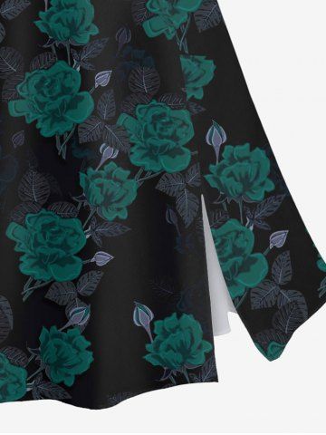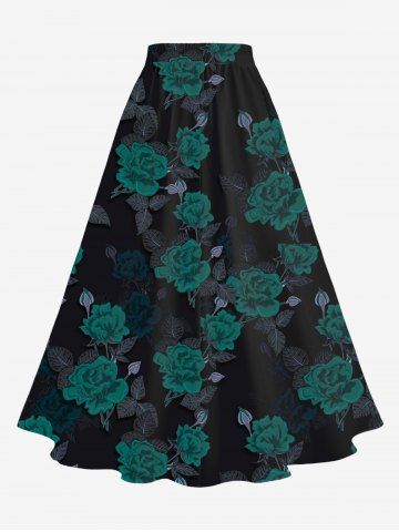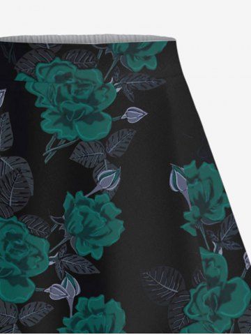Jupe fendue grande taille à imprimé roses et feuilles pour la Saint-Valentin - Noir - Noir