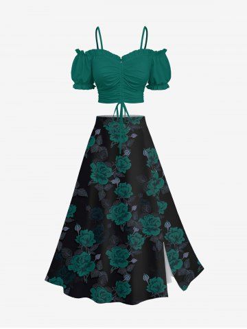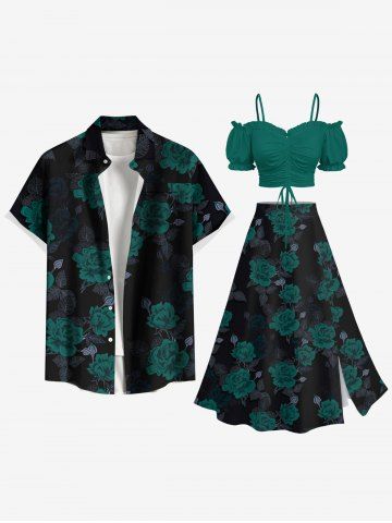 Leggings Graphiques > Jupe fendue grande taille à imprimé roses et feuilles pour la Saint-Valentin