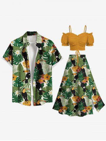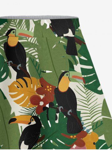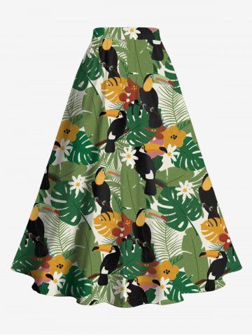 Jupe hawaïenne fendue à imprimé marguerites, feuilles tropicales et oiseaux, grande taille - Vert - Vert