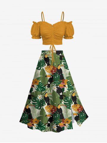 Leggings Graphiques > Jupe hawaïenne fendue à imprimé marguerites, feuilles tropicales et oiseaux, grande taille
