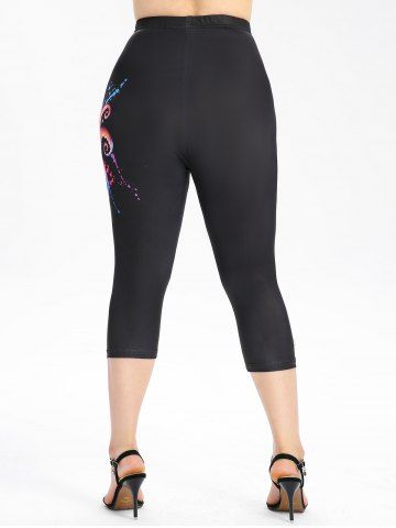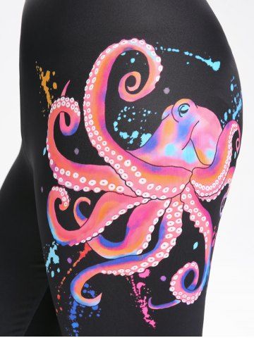 Legging à Imprimé Pieuvre à Taille Haute de Grande Taille - Noir - Noir