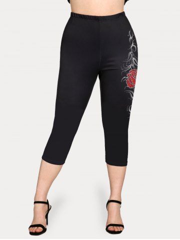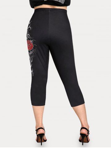 Legging à Rose à Taille Haute Grande Taille - Noir - Noir