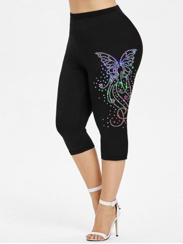 d*****r5Plus Size 3D Rhinestone Butterfly Print Capri LeggingsColor: BLACK Size: 5X | US 30-32Oh these fit beautifully and make my summer black clothing dreams is is wonderful