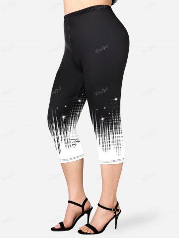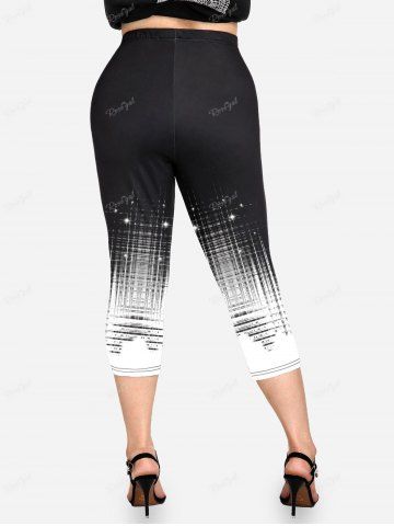 Legging Capri à Imprimé Brillant 3D Fumée Lumineuses Grande Taille - Noir - Noir