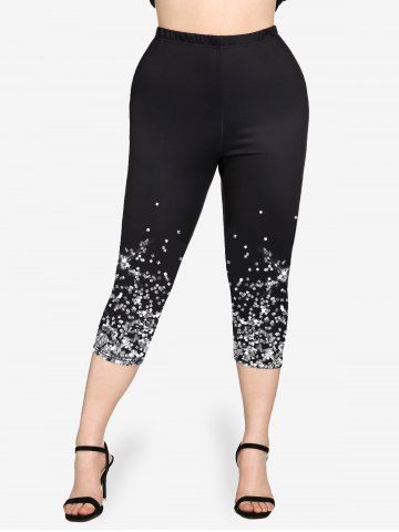 Plus Size Sparkle Glitter High Rise Capri Leggings