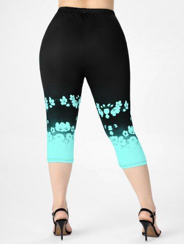 Legging Corsaire Courbe à Imprimé Fleuri à Taille Haute de Grande Taille - Vert Clair - Vert Clair