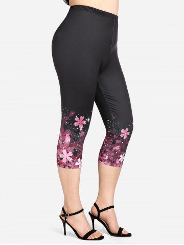 Legging Corsaire à Imprimé Fleuri à Taille Haute de Grande Taille - Noir - Noir