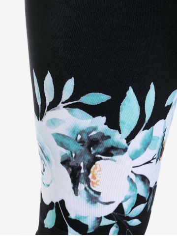 Legging Corsaire à Imprimé Fleuri en Blocs de Couleurs de Grande Taille - Noir - Noir