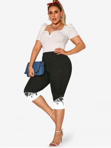 s*****n5Plus Size 3D Printed Two Tone Skinny Capri LeggingsColor: BLACK Size: 2X | US 18-20I love these. the fabric is so comfortable and breathable