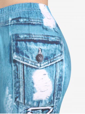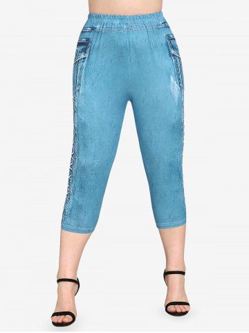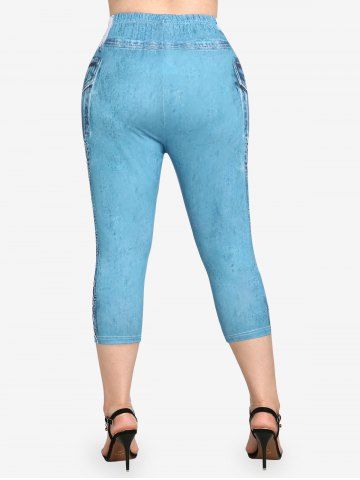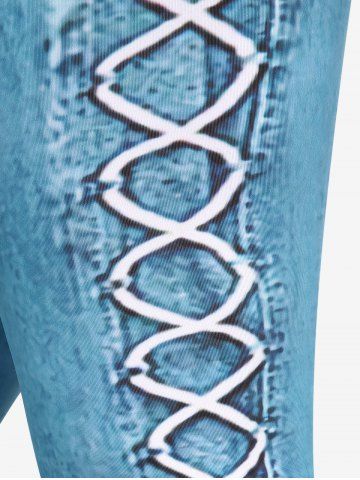 Legging Corsaire Moulant à Imprimé 3D Jean à Taille Haute de Grande Taille - Bleu - Bleu