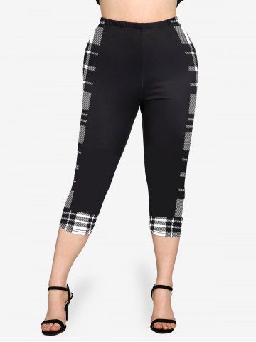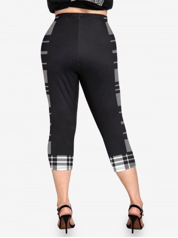 Legging Capri Moulant à Carreaux de Grande Taille - Noir - Noir