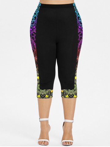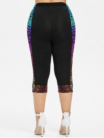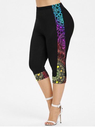 Legging Capri Moulant Ethnique Imprimé de Grande Taille - Noir - Noir