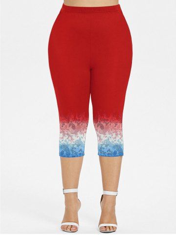 Leggings Graphiques > Legging Capri Ombré Fleuri Imprimé de Grande Taille