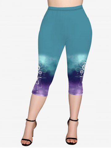 Leggings Graphiques > Legging Capri Ombré Galaxie Imprimée de Grande Taille avec Poche