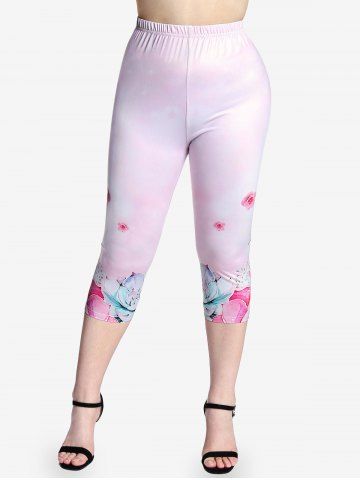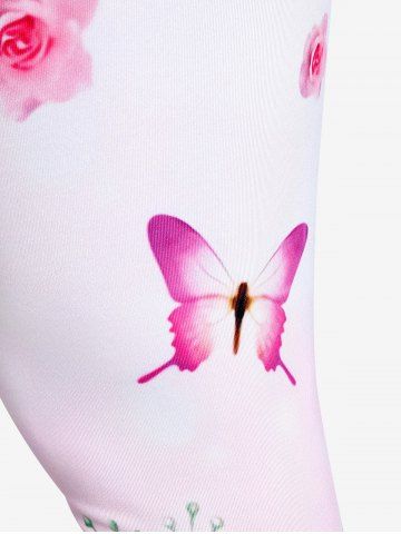 Legging Corsaire Ombré à Imprimé Papillon Grande Taille - Rose Clair - Rose Léger