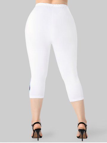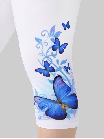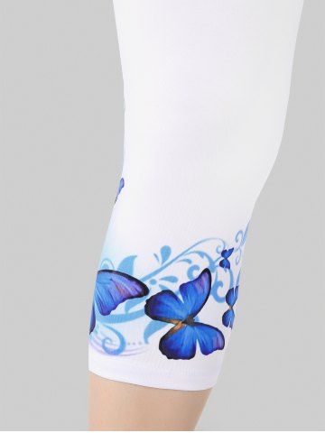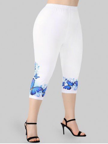 Legging Corsaire à Imprimé Papillon à Taille Haute de Grande Taille - Blanc - Blanc
