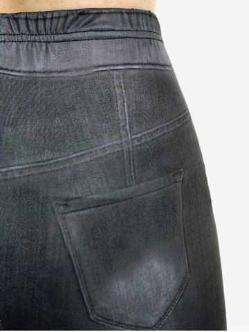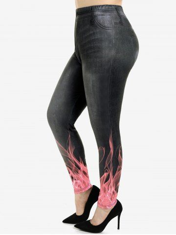 Legging Moulant à Imprimé 3D Flamme de Grande Taille en Jean - Noir - Noir
