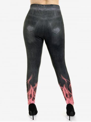 Leggings Graphiques > Legging Moulant à Imprimé 3D Flamme de Grande Taille en Jean