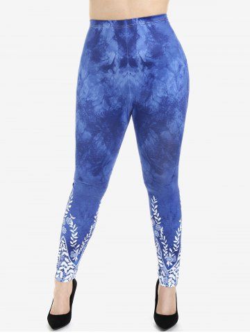 Plus Size Tie Dye Leaf Print Skinny Leggings