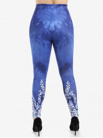 Legging Moulant à Imprimé Feuille Teinté de Grande Taille - Bleu Profond - 3x | Us 22-24