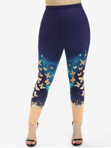 Leggings Graphiques > Legging Moulant à Imprimé Papillon à Taille Haute de Grande Taille