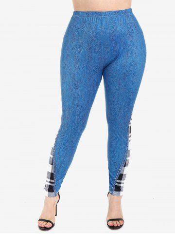 Legging Panneau à Carreaux de Grande Taille - Bleu Profond - 3x | Us 22-24