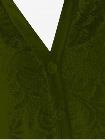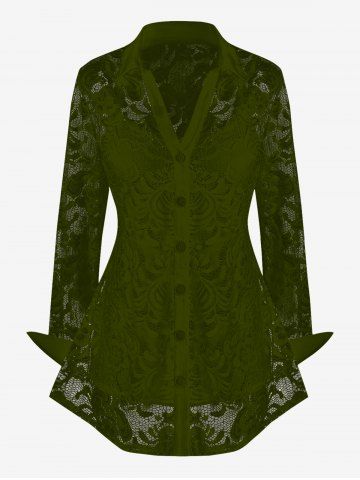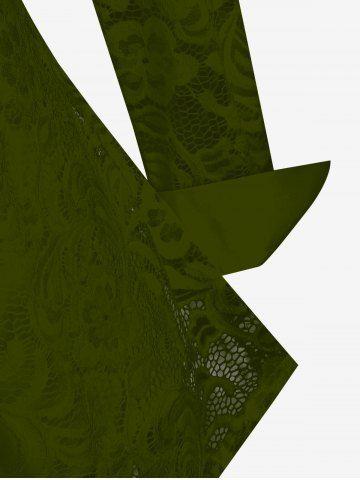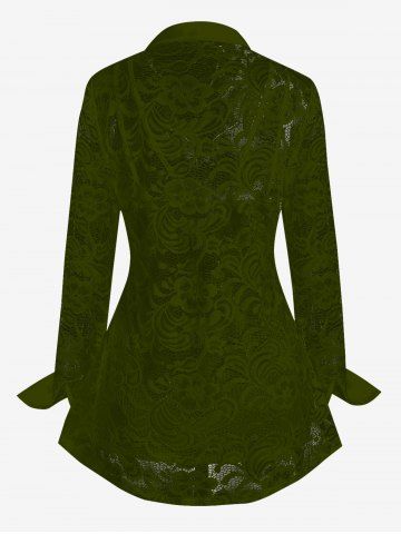 Ensemble chemisier transparent en dentelle fleurie et haut caraco grande taille - Vert Profond - 1x | Us 14-16