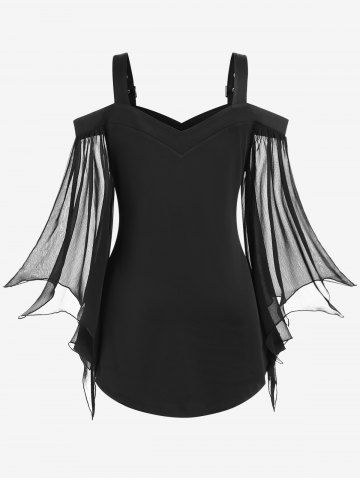 r*****e4Plus Size Cold Shoulder Buckle Straps Mesh Bell Sleeve TopColor: BLACK Size: 3X | US 22-24The clothes are so well made and there is a large dry rarity of things that you can choose from and I love the bundles they are just wonderful thank you