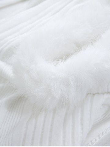 Haut à Capuche Texturé Côtelé Superposé à Ourlet en Laine de Grande Taille - Blanc - Blanc