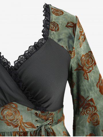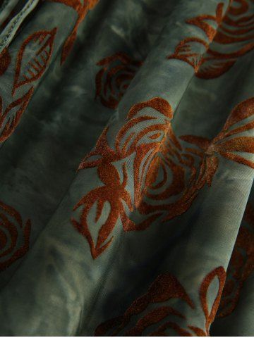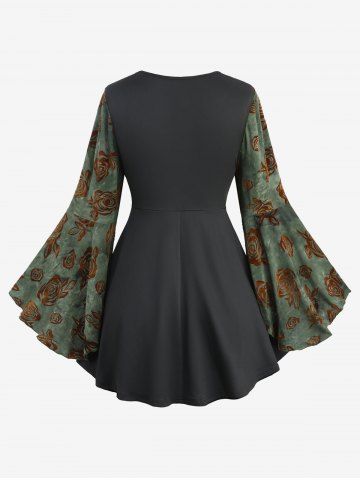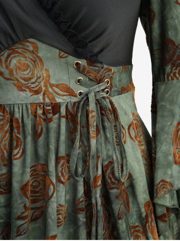 T*****i5Plus Size Flare Sleeve Rose Flower Flocking Lace Up Surplice Lace-trim TopColor: DEEP GREEN Size: L | US 12Je l’ai commandé en L et j’ai reçu du XL, mais ça va quand même. Je n’avais pas vu en photo que c’était du velours.