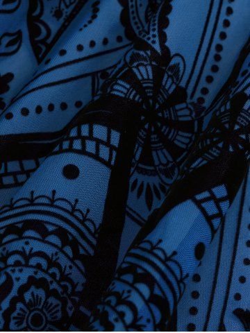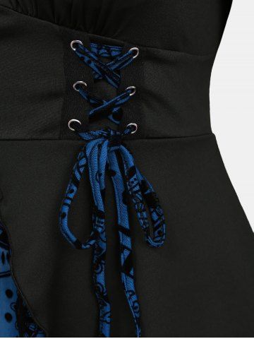 Haut Gothique Fleuri Imprimé de Grande Taille à Manches de Cloche à Volants - Bleu Profond - 4x | Us 26-28