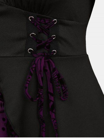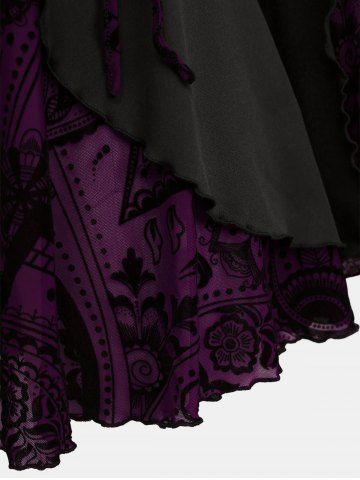 Haut gothique grande taille à imprimé floral, à lacets, froncé, volants, manches cloche - Violet Alto - 4x | Us 26-28
